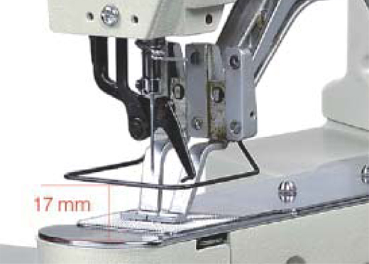 As for its intense rigidity the feeding device and take-up-lever device, the machine will not undergo bended or warped sewing even at high speed.