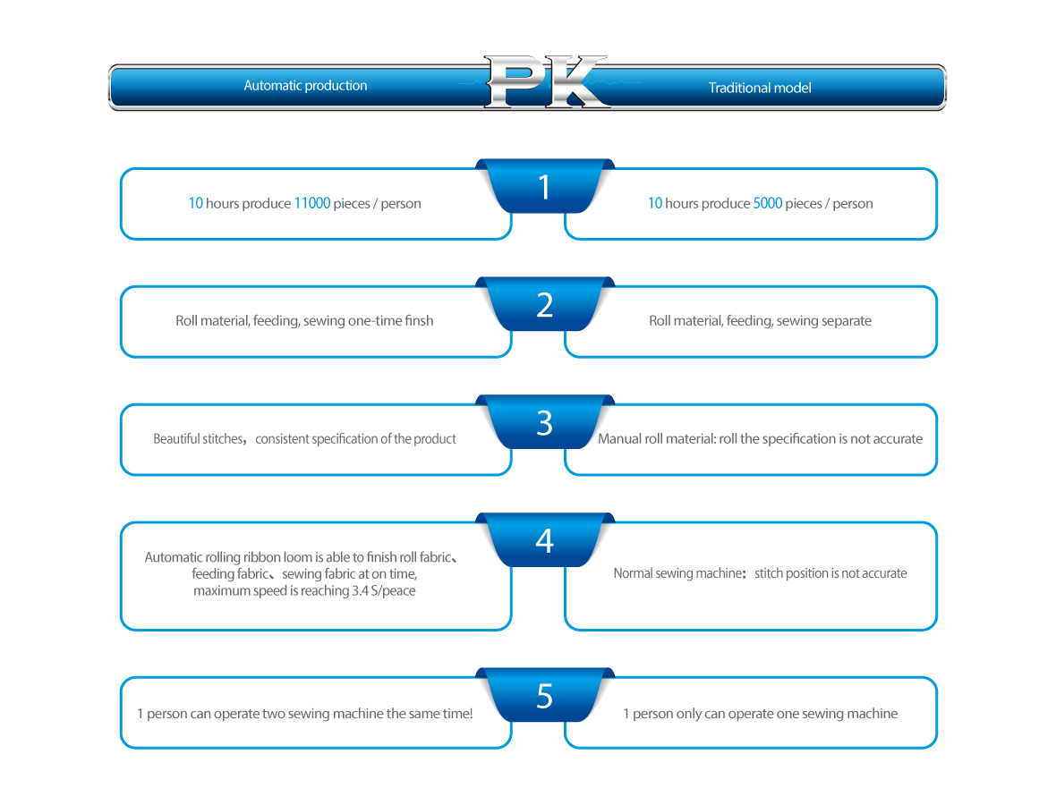 Mainly applicable to automatic bending folding circle type of various tapes. Applicable to the luggage, childrens wear and other round belt of the sewing (sewing the circle with a maximum folding length of 100mm, the maximum width of the tape 40mm)